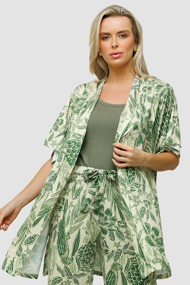 O Kimono Estampado Araras é a opção perfeita para quem busca leveza e estilo em um só look. Com estampa botânica exclusiva, traz um toque natural e elegante — ideal para dias de sol, passeios ao ar livre ou momentos de descontração.